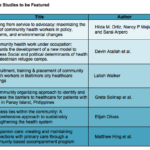 Program Context Aida and al-Azza refugee camps were founded in Palestine in 1950 and currently have an estimated population of 7,500 and a population density of roughly 220,000 people per square mile. Aida and Al-Azza are adjacent to the separation wall and a military barracks in Bethlehem in the Occupied Palestinian Territory. A recent report described … [Read more...] about Community Health Work Under Occupation: Towards the Development of a New Model to Address Social and Political Determinants of Health in Palestinian Refugee Camps