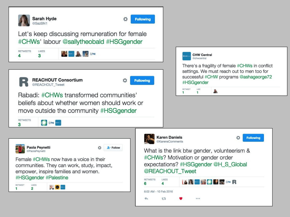 - Intersectional and reflexive analysis of ways gender and power shape CHWs to influence their wider environments